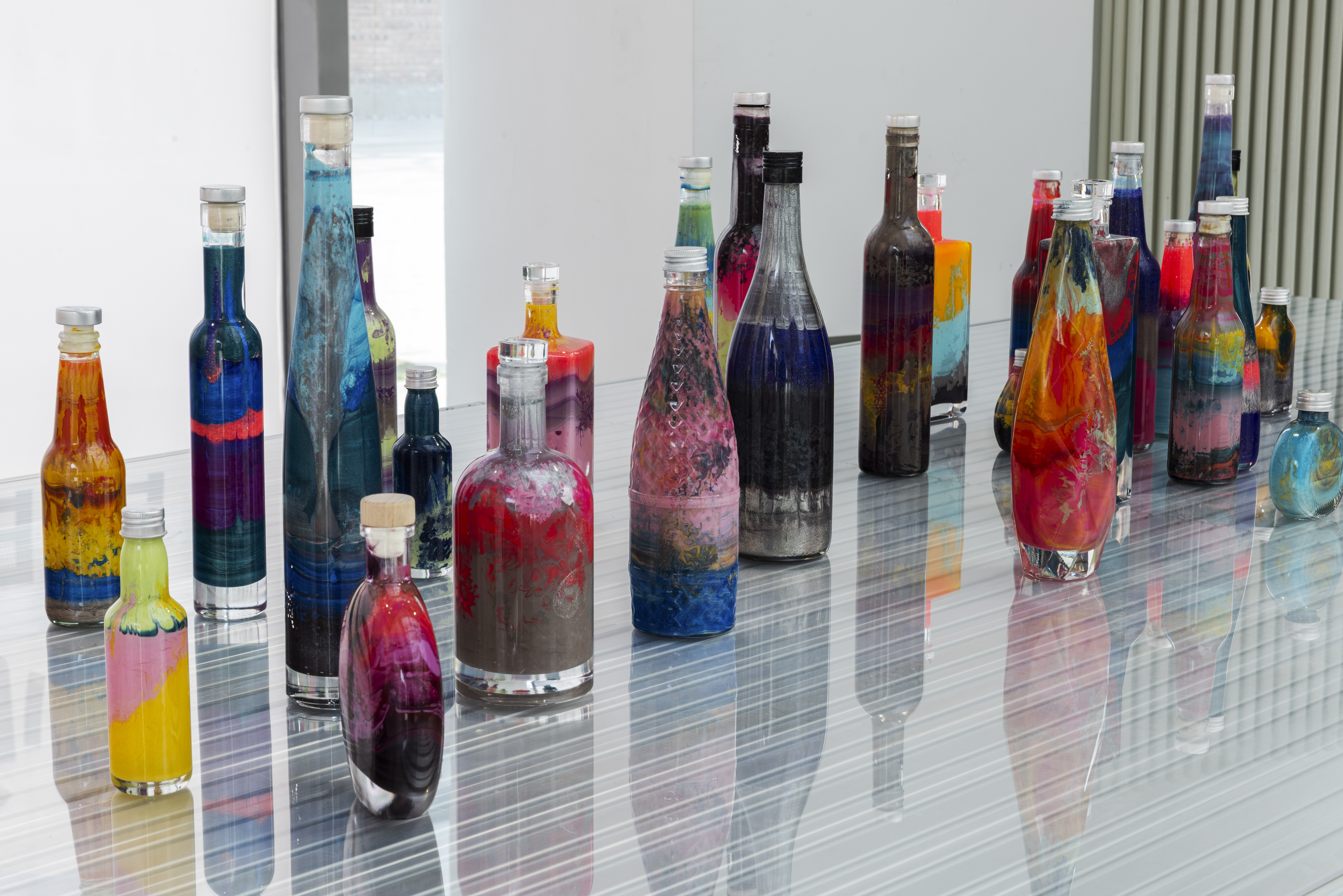 Li Jinghu’s artistic practice centers on the subject of urban mass production, transforming readily accessible everyday materials, particularly industrial ready-mades, into mediums of production that illuminate the underlying relationships between labor and consumption. In White Clouds, he assembles fluorescent light tubes, commonly used in factory ceilings, into a cloud-like form suspended above the lobby. The light that once illuminated the bodies of factory workers is reimagined as a poetic manifestation of collective experience. This interplay between materiality and natural imagery disrupts superficial perceptions of everyday life, resonating with the architectural concept of ‘Playful Valley’ at X Museum—a space that transforms industrial structures into a rhythm of wandering through landscapes, reimagined within an Eastern aesthetic framework. The materiality of Li’s works operates on two planes. In one sense, his materials serve as media intrinsically tied to specific socio-industrial contexts: mosaic tiles, frequently employed by the artist, resonate with southern China’s industrial history and urbanization, while Immortality, a sculpture of stacked fruits and vegetables, reflects the commodity-driven economy. In another sense, his materials possess a commensurable quality – The artifacts, through repeated arrangement, ultimately transform into accumulated emotions over time and are revealed.